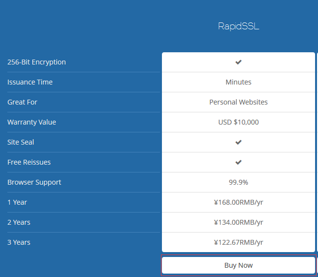 第一步,通过隽永东方官网购买RapidSSL证书